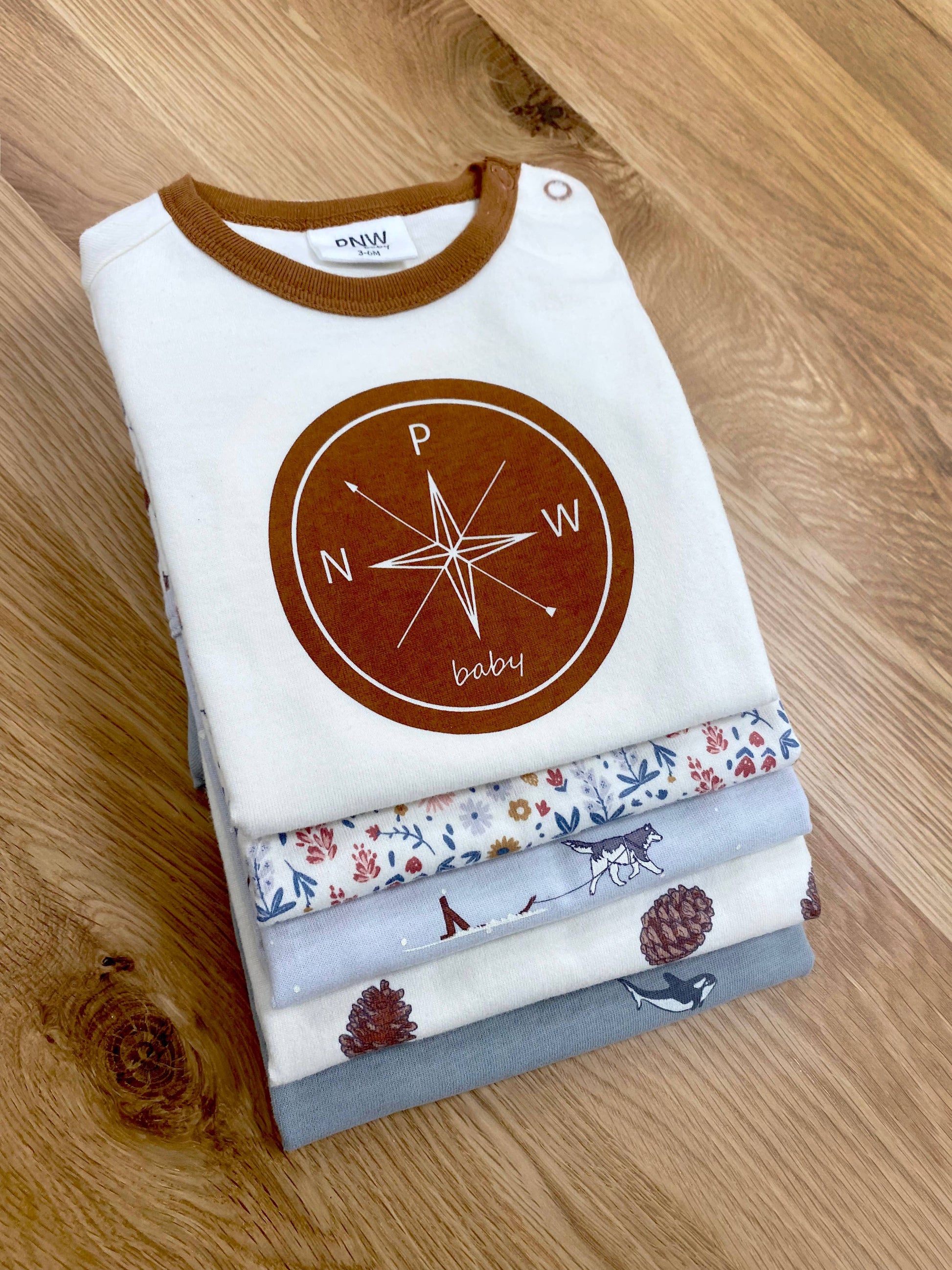 PNW Baby gathered button romper in the sweetest all-over huskies print. Features a button up front and snaps at the crotch for easy diaper changes, the gathered romper is perfect for everyday. Manufactured by City Mouse for PNW.